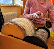 1. Am Wolltag haben wir die Wolle zuerst kardiert.