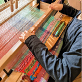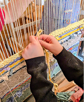 4. Schließlich haben wir die gesponnene Wolle und andere Fasern auf Webstühlen gewebt.